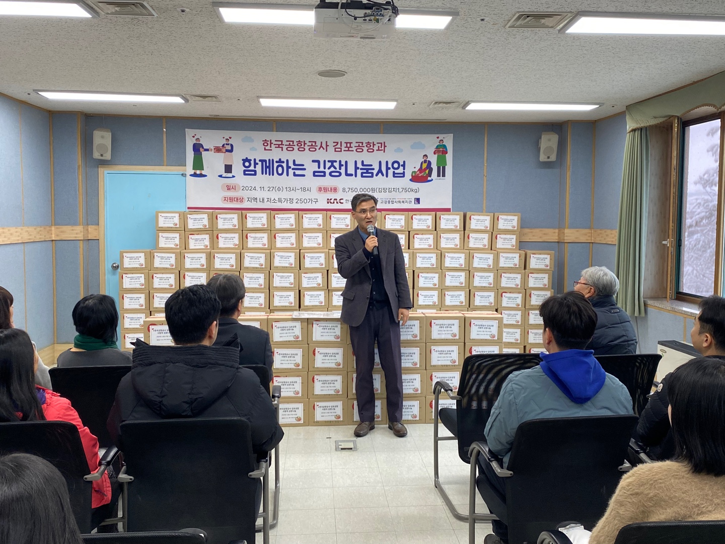 지난 1년간 삭초풀 매각금액과 김포공항 시설단의 기부금을 통해 조성된 875만원 기부해 김장김치를 마련해주셨습니다.