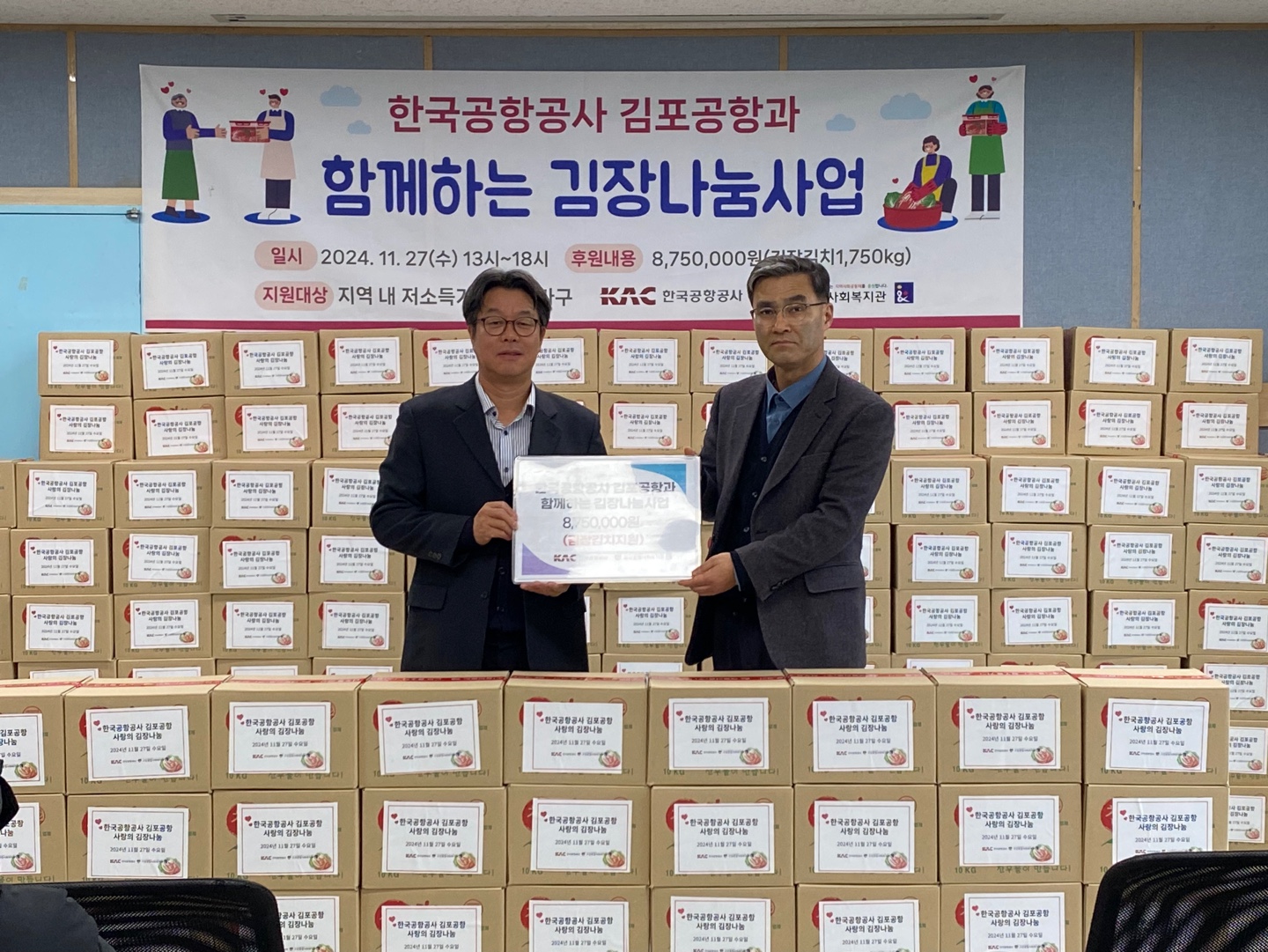 11월 27일(수) 한국공항공사 김포공항에서 고강동 주민 250가구에 김장김치 1,750kg을 전해 주셨습니다.