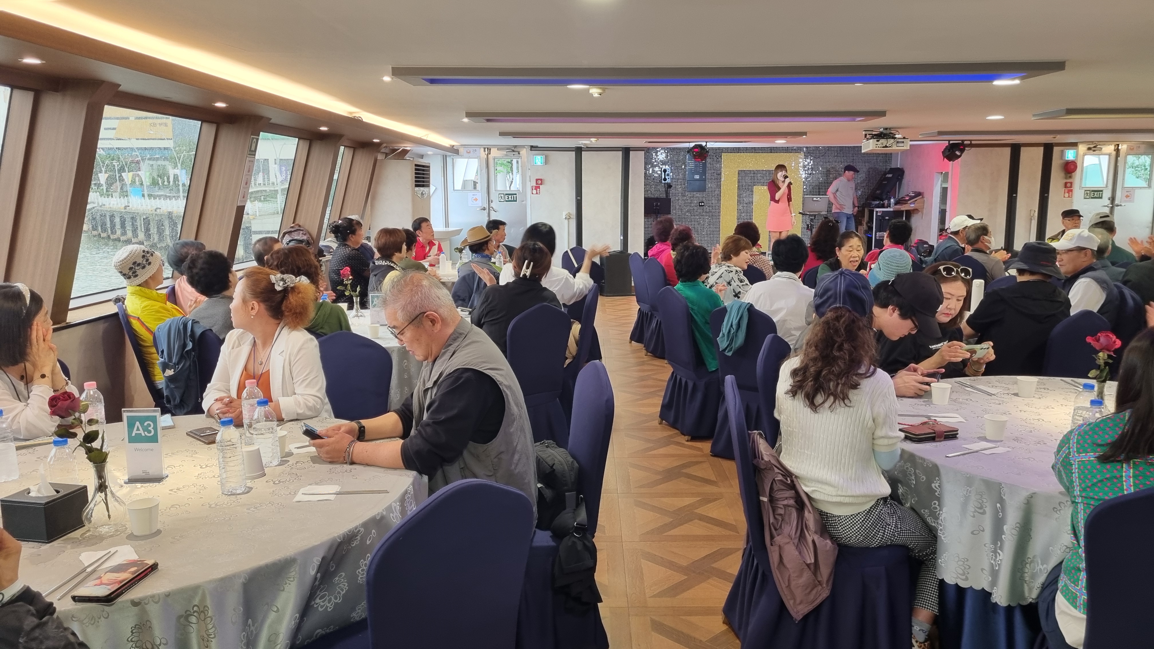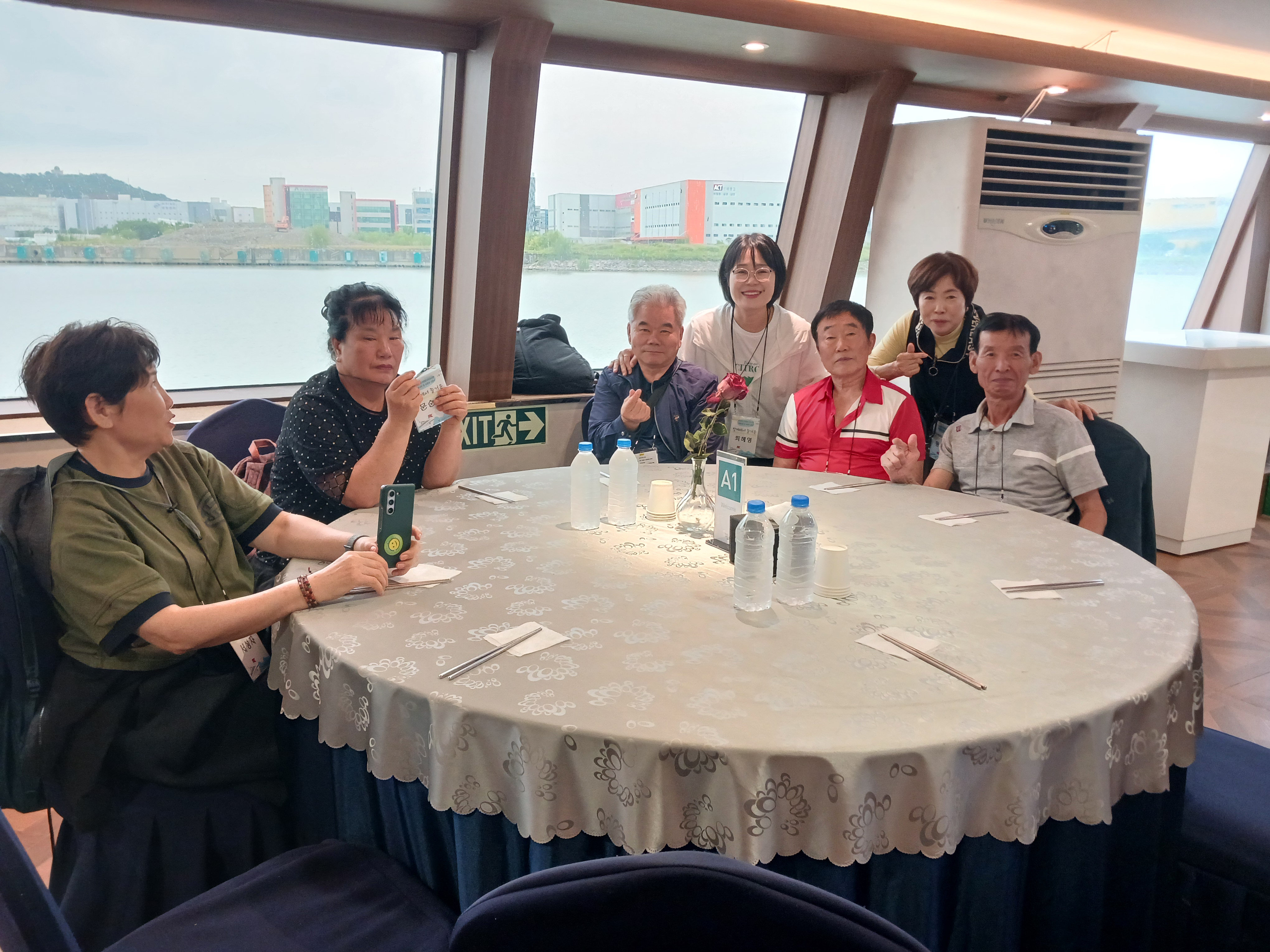 한강 위를 유유히 떠가는 유람선에서 바라보는 도심의 풍경, 점심식사와 함께 준비된 공연은 마치 선물처럼 봉사자분들의 마음을 사로잡았습니다. 함께 웃고, 사진도 찍고 춤도 추셨네요.