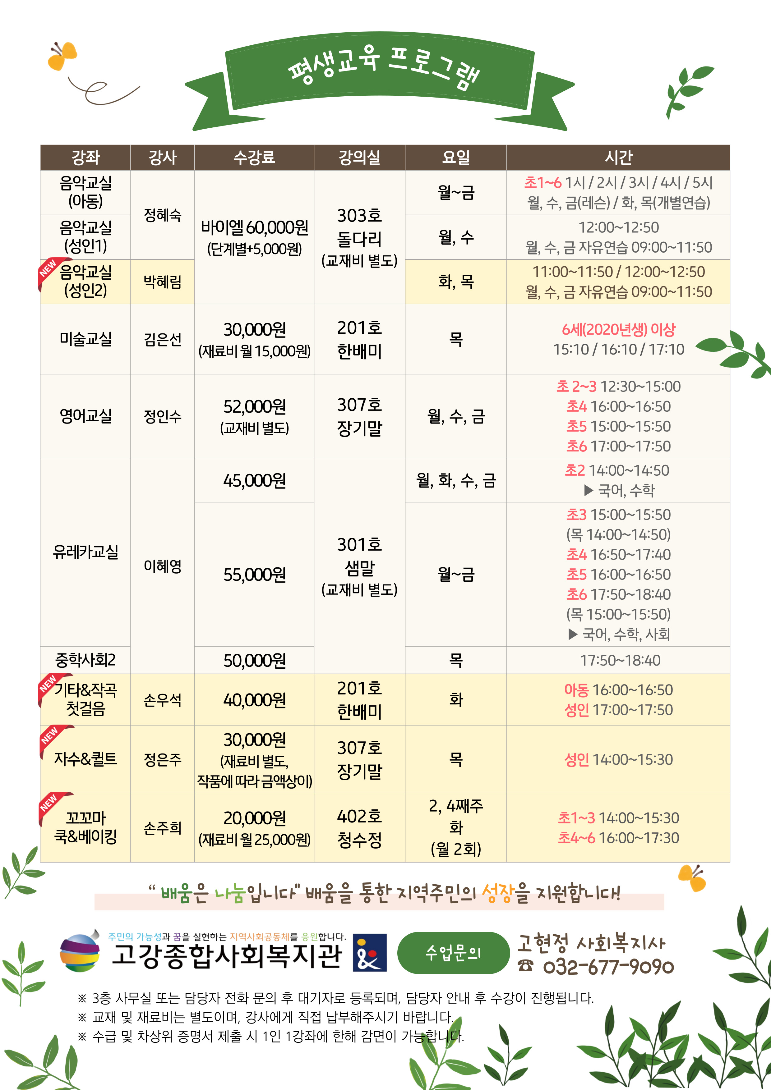 고강종합사회복지관에서 운영하는 평생교육 강좌를 소개합니다😀