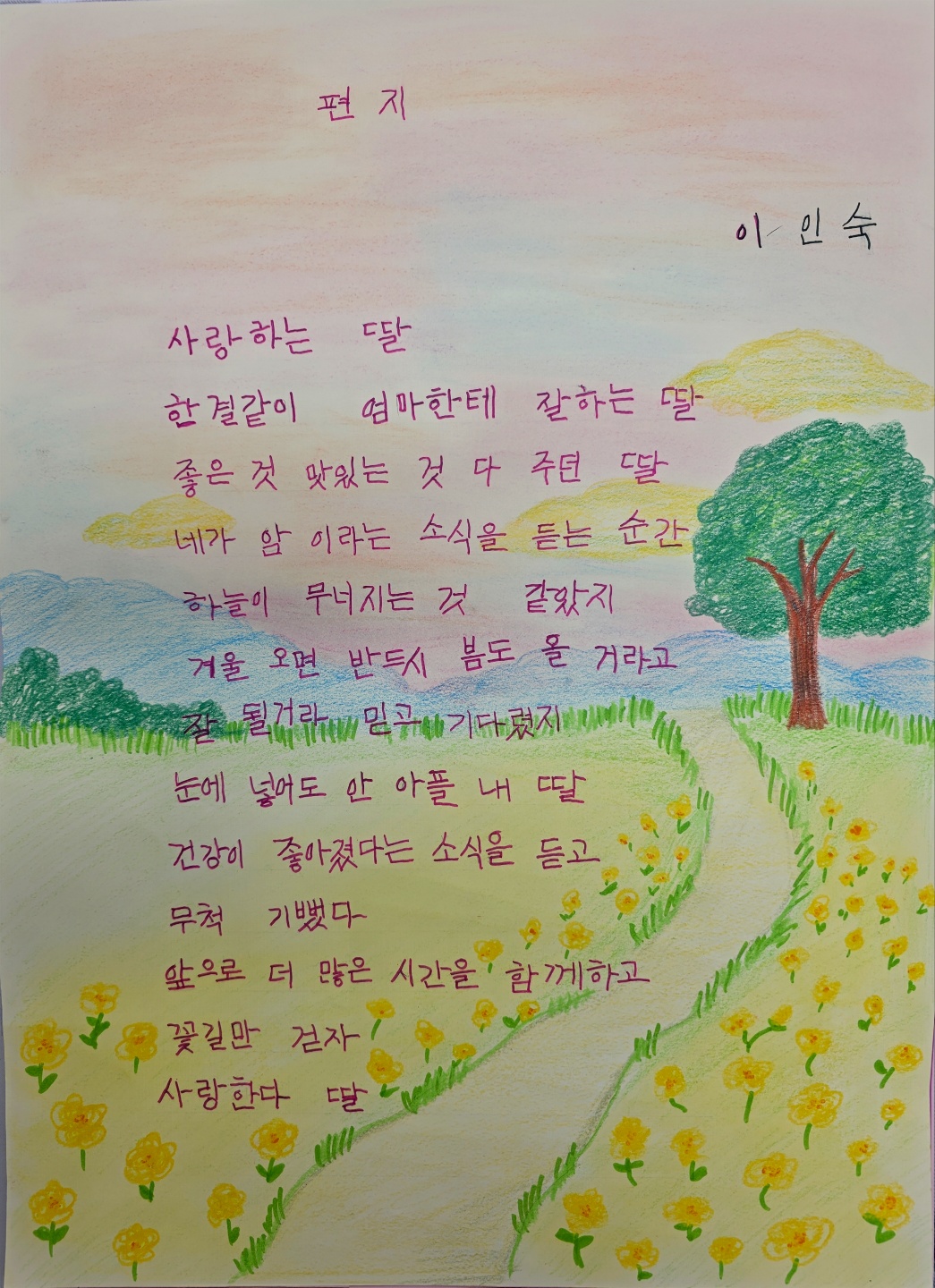 글자를 배우고, 가족에게 전하고 싶은 말을 시화로 표현한 학습자분들의 작품은 배움의 결실을 잘 보여주었습니다.