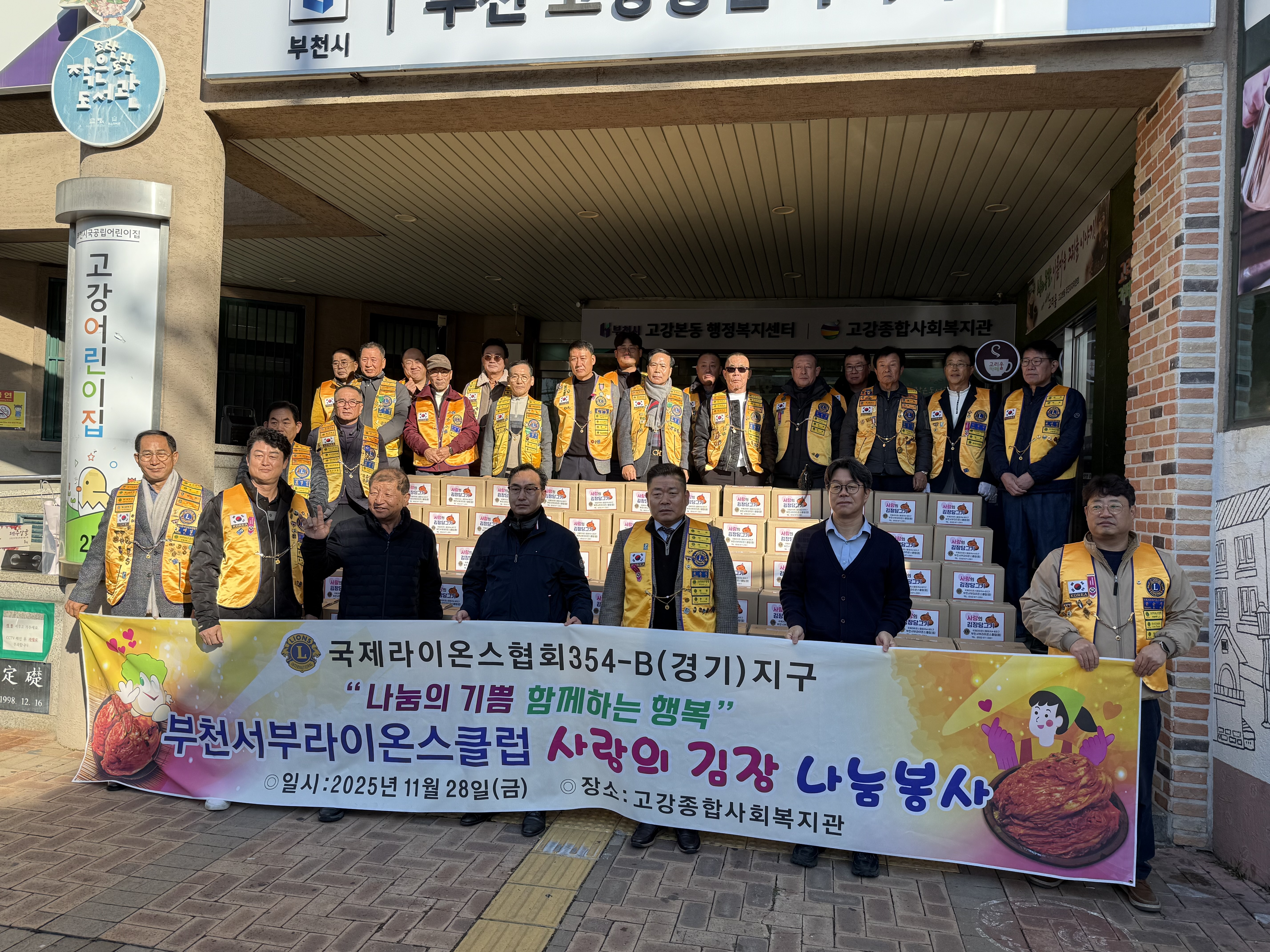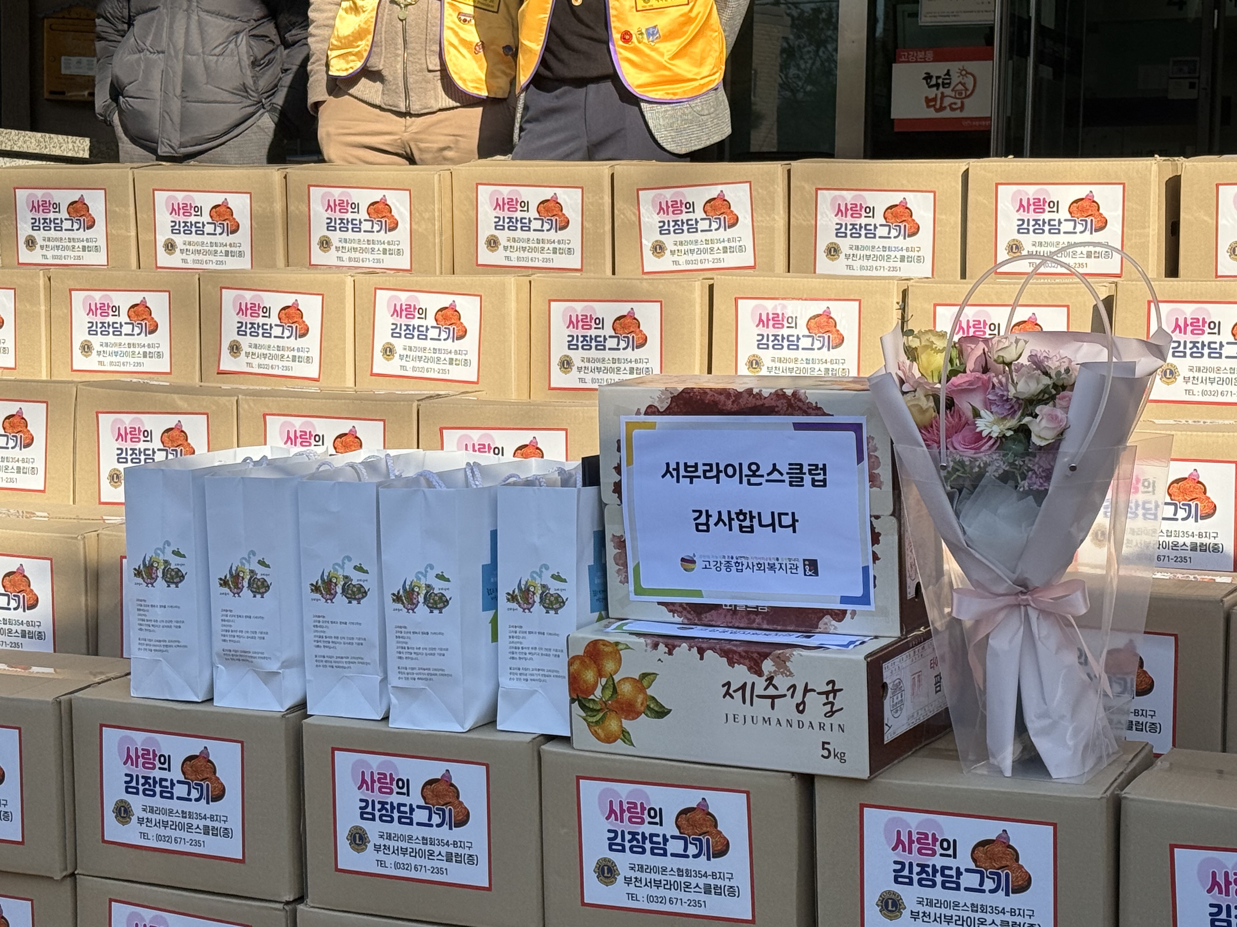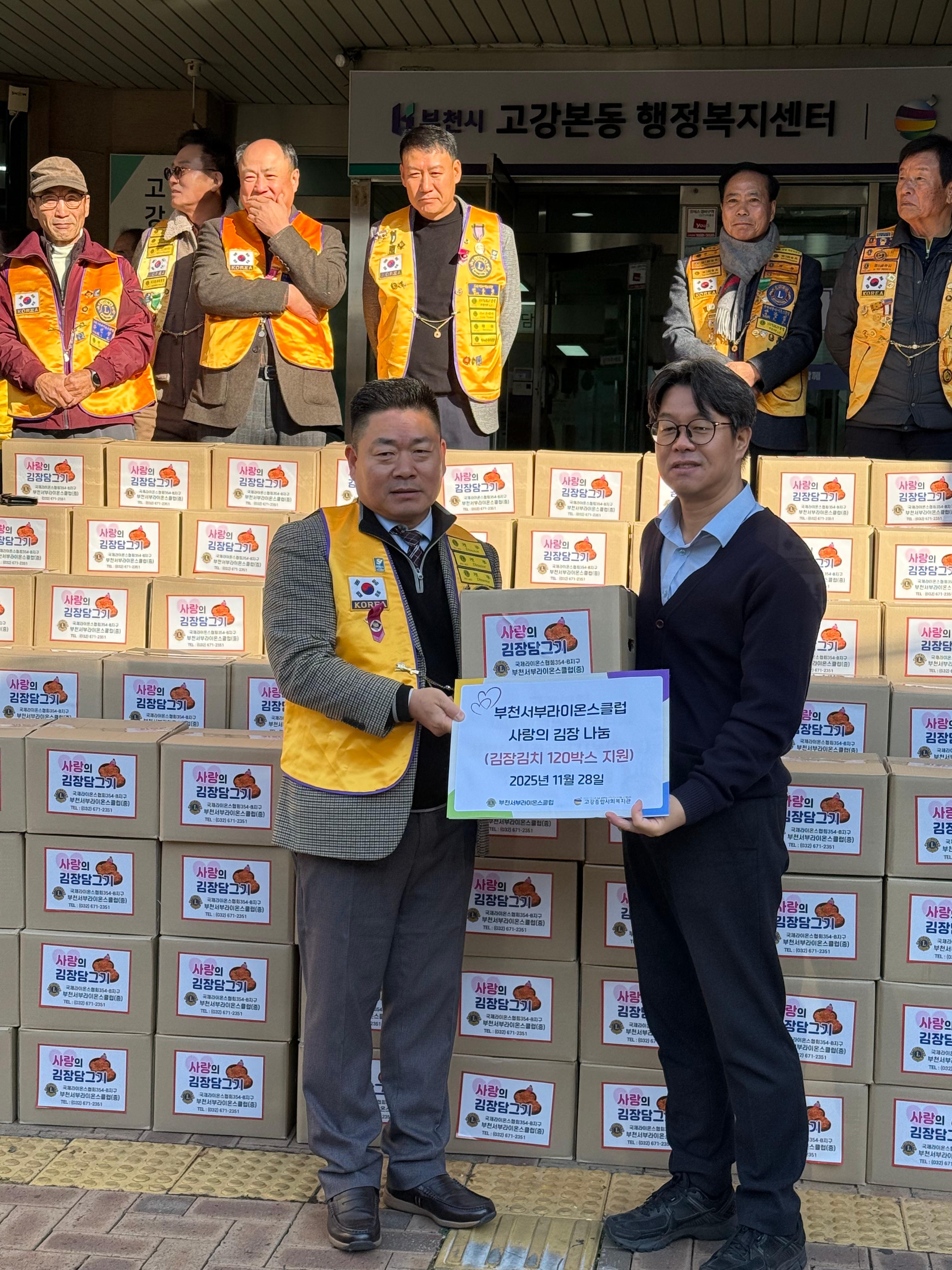 이날 후원한 김장 김치는 고강1동과 성곡동 120가구에 전달하여 서부라이온스클럽의 사랑은 전할 수 있었습니다.